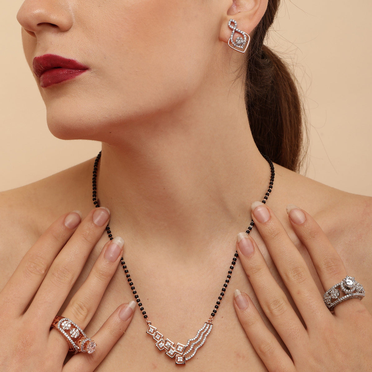 D2A presents to you a sterling silver Mangalsutra with the Magestic  look to be the center of attraction in every occassion. The embellishments up the beauty of the symbol, reminding you that anything is possible!SEVEN SQUARES FOR SEVEN WOWS!