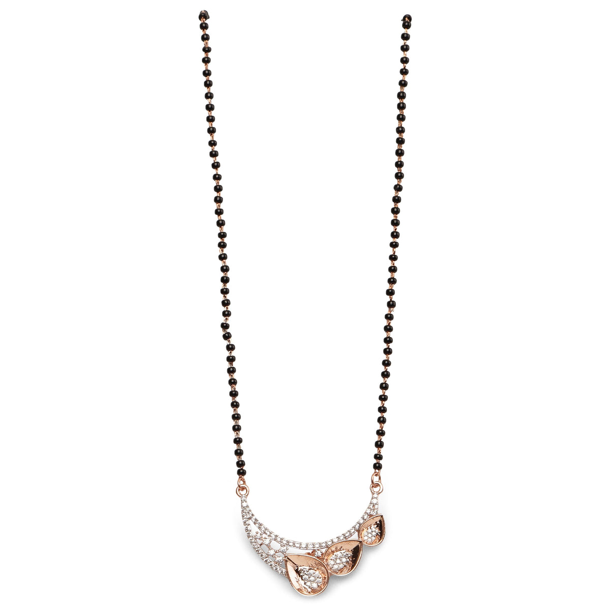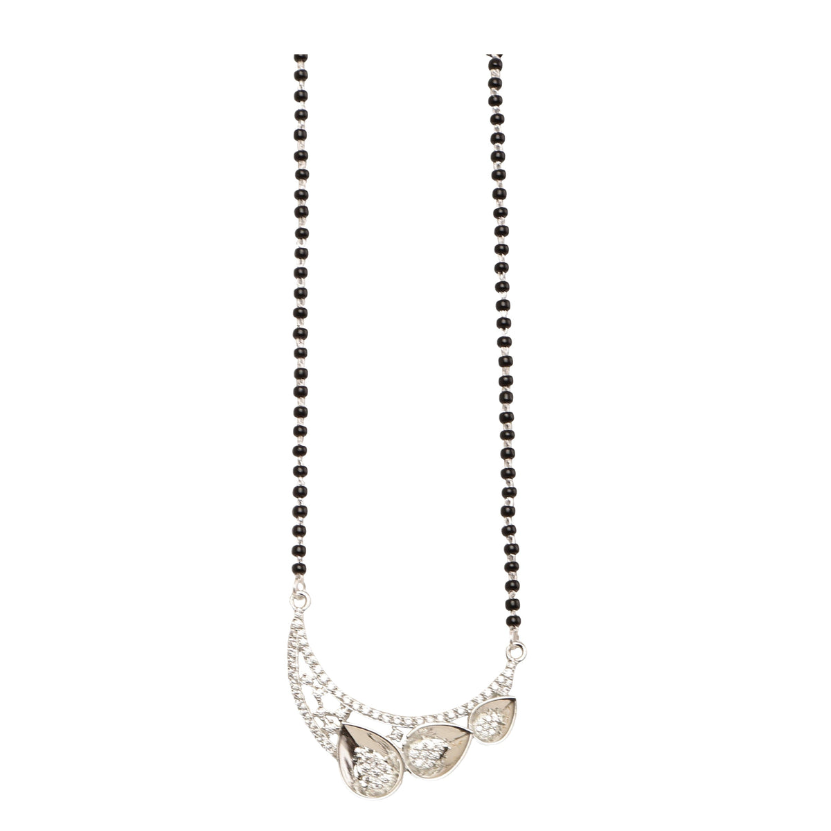 Indulge in luxury with the Tranquil Oasis Manglasutra. Made of 925 sterling silver, this stylish piece adds an elegant touch to any traditional outfit. With its striking similarity to real gold, you can elevate your style without breaking the bank. Transform any look into a sophisticated and exclusive ensemble.