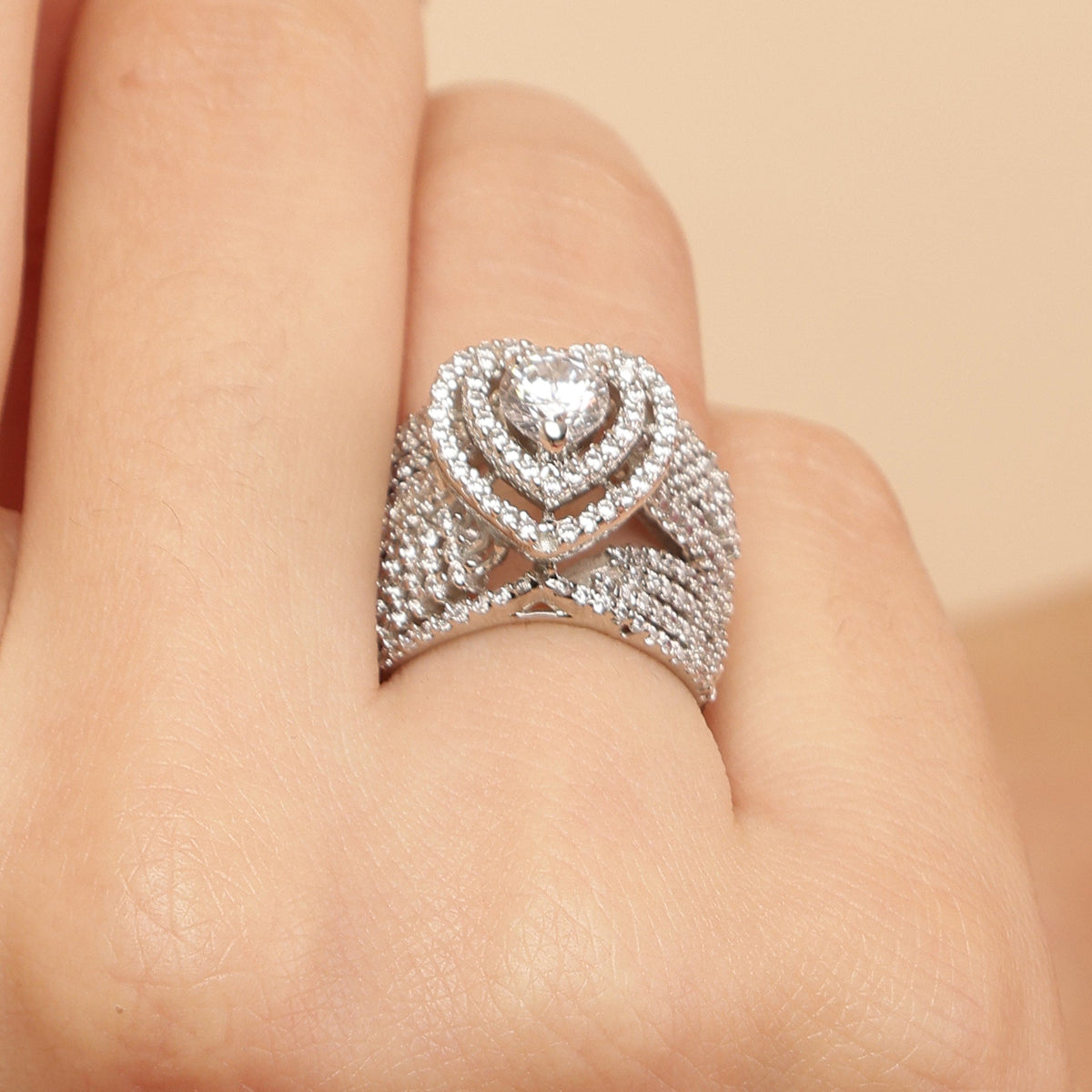 The Silver Swarrovski Heart's Desire Ring has the design of a beautiful heart shape, studded with zircons all across the design, and one eye-catching single piece of Swarovski in the centre.