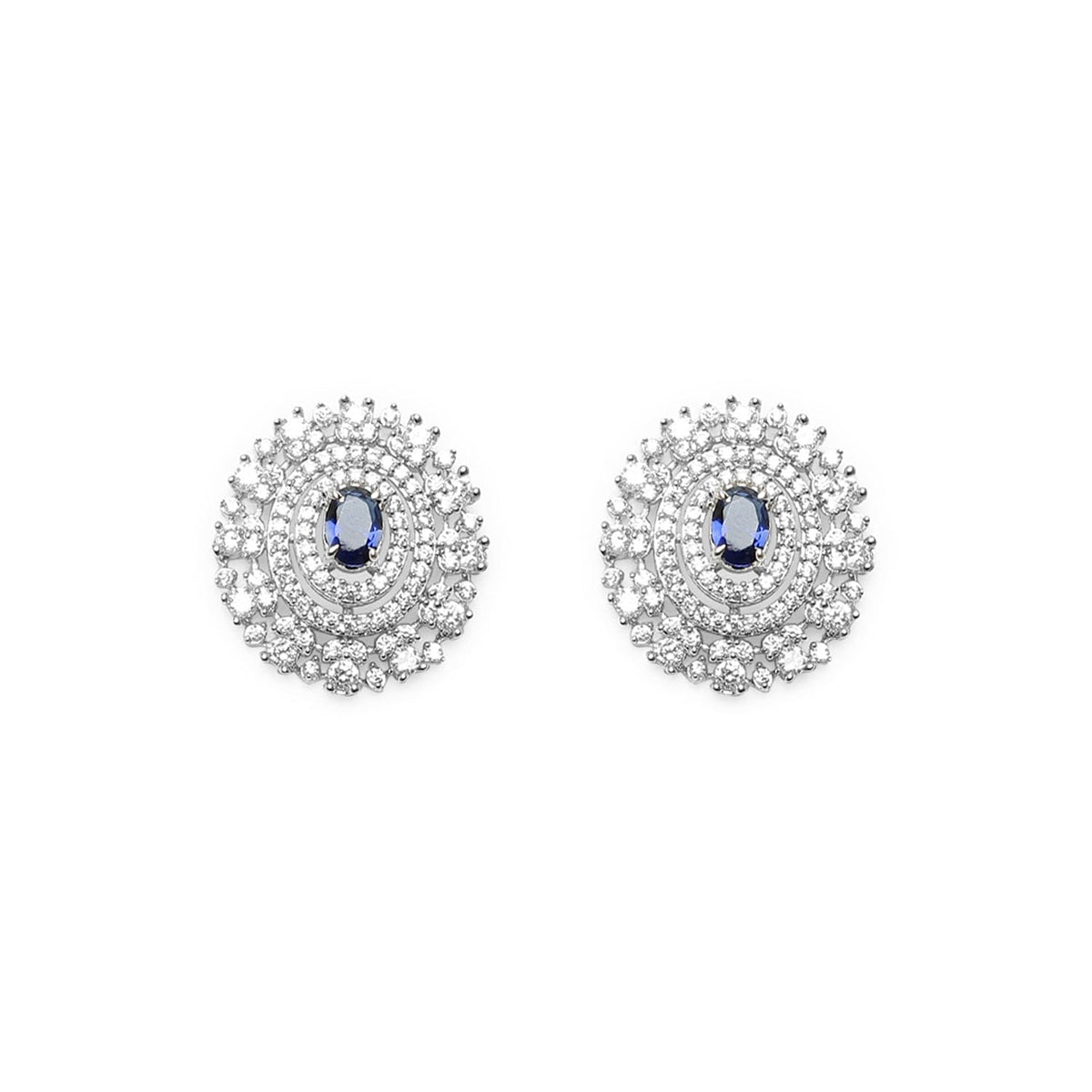 Nestled on a stunning sterling silver base, the sparkling shine of finely-cut sapphire stones brings a feeling of ecstasy. Inspired by the contemporary pull of cosmopolitan fashion, these earrings are perfect for the ambitious woman!